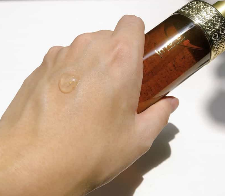 Texture: Smooth, slightly viscous, with shimmering gold flecks.Ā